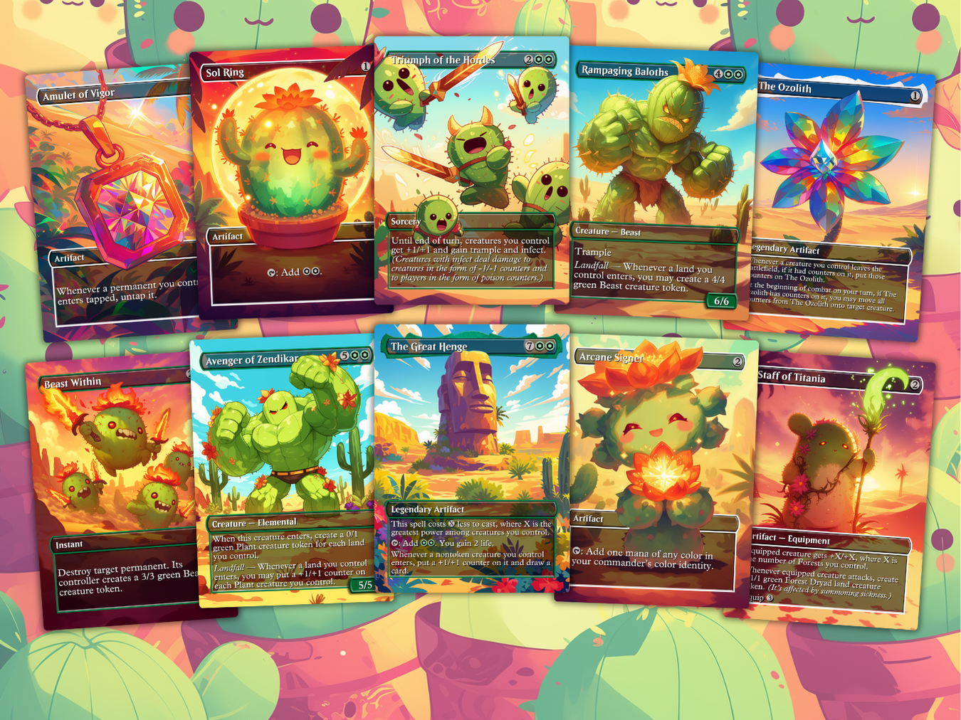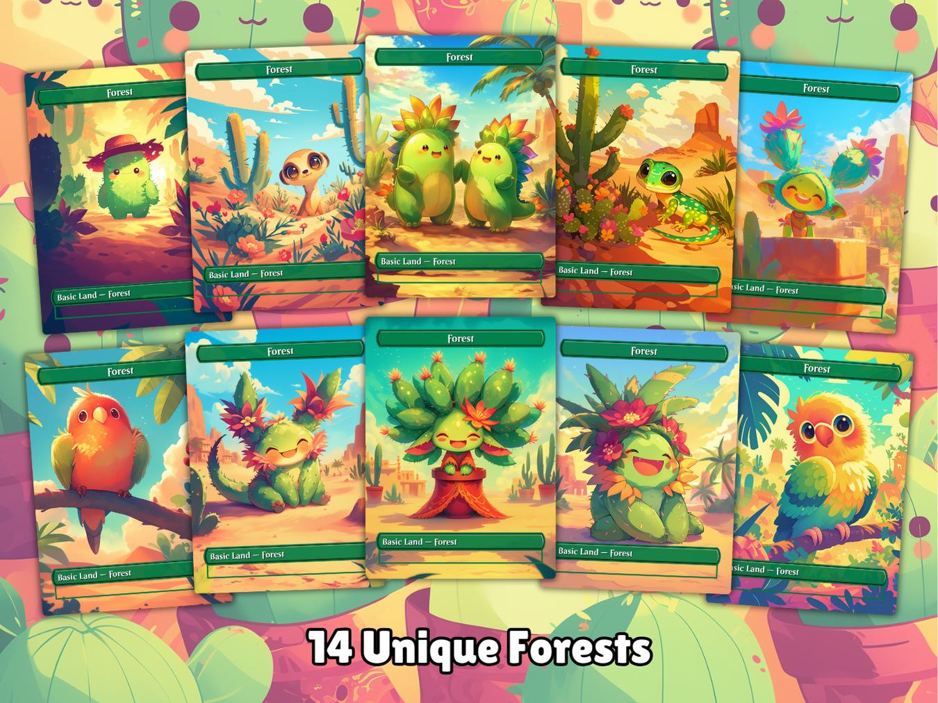 – All cards are designed with a consistent adorable chibi cactus art style.